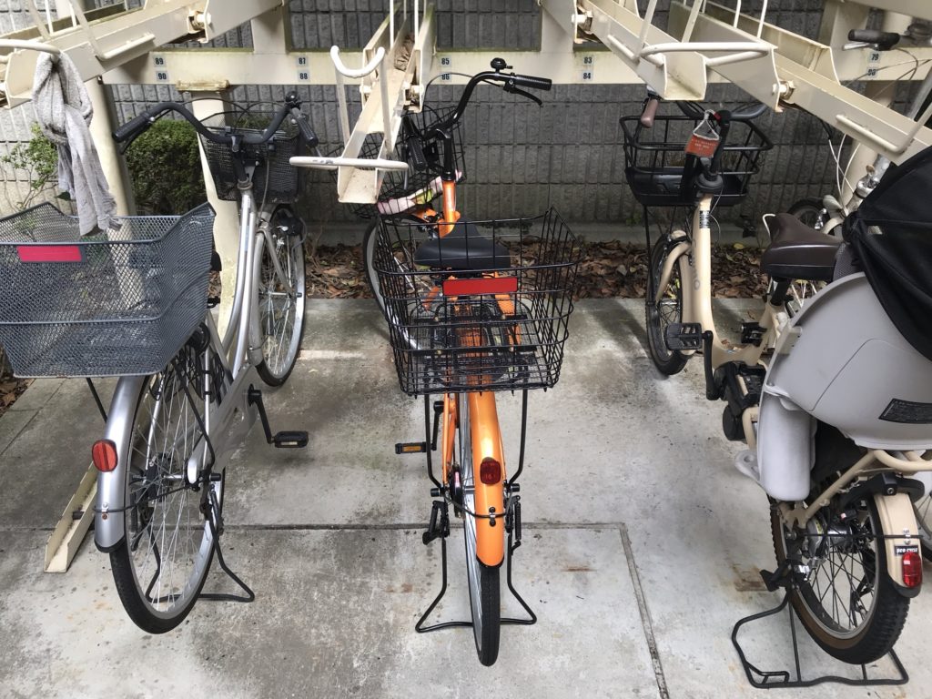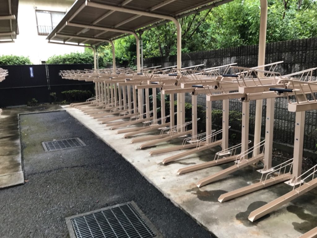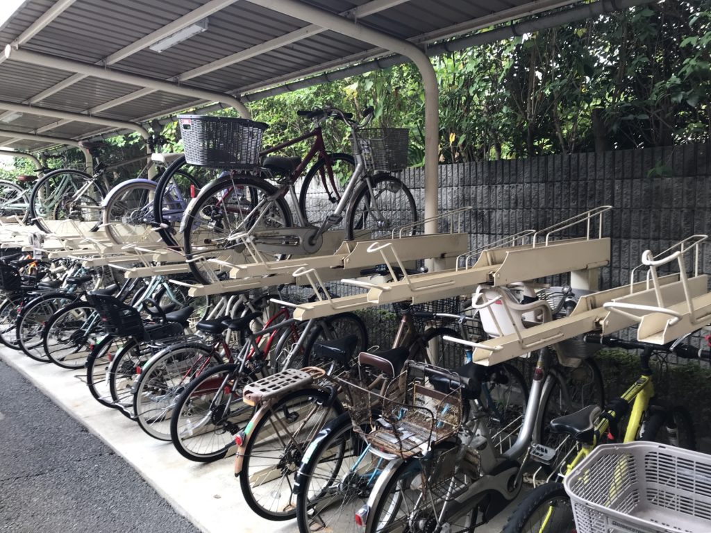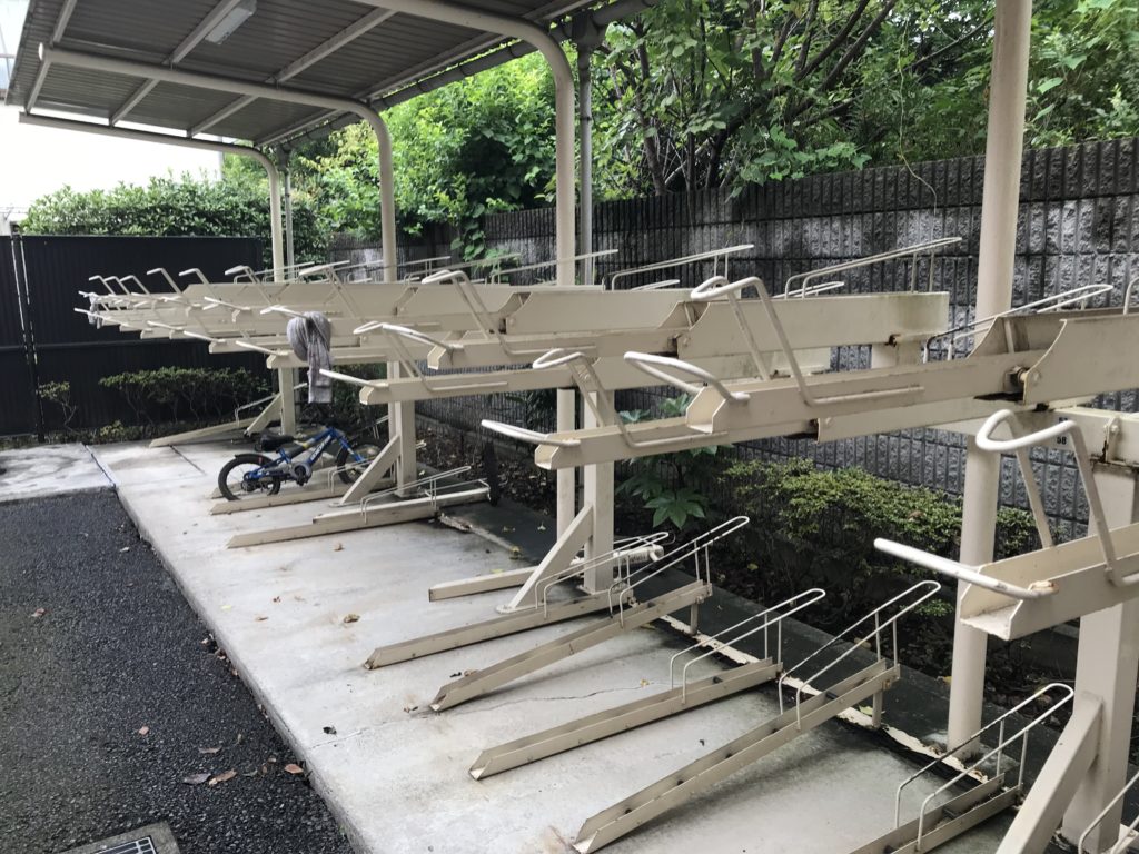 既存の駐輪機は上段は斜めに引き下ろし、下段は固定されている、固定2段式と言われるタイプの駐輪機が設置されていました。